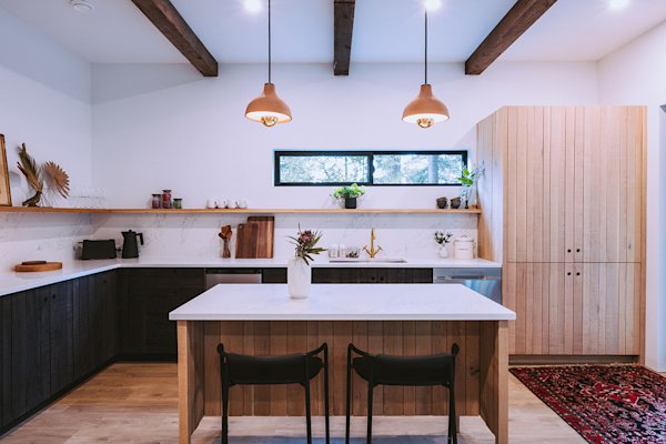 Inside the Trail House, the space is well-equipped for ample lounging—though if you're looking for a place to hole up and cook the weekend away, be aware that two plug-in convection burners and a toaster oven take the place of a conventional stovetop and oven. We managed to chef it up with ambitious meals over two nights and three days, but there is an element of alpine hostel vibes to the cooking setup, for better or worse.